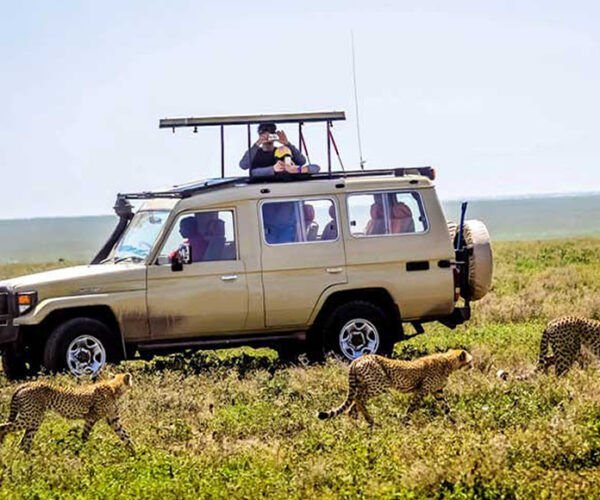 Most 4x4 safari cars seat 5 passengers comfortably, while safari vans and larger 4x4s can accommodate up to 7–10 people. Vehicles come with ample luggage space for safari gear, photography equipment, and personal belongings.